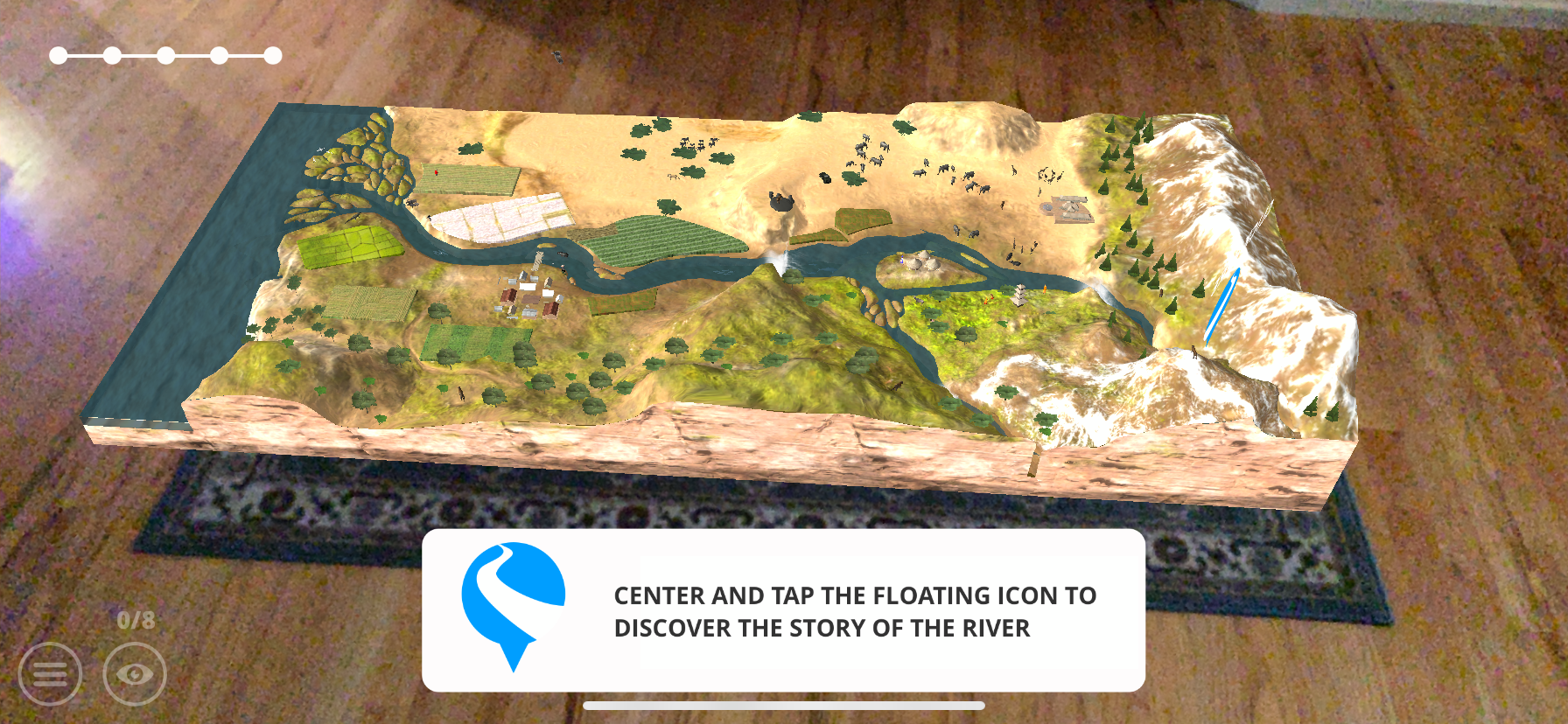 We needed to discover if augmented reality was the right technology for this use case. We began by doing heuristics testing on Free Rivers, immediately the pros and cons were apparent. The user places a 3D model on a flat service and walks around it manipulating parts of the landscape and learning about the socio-economic factors surrounding dams and river energy sources. It was engaging and unique, but the set up was difficult and it was much too easy to skip through all of the educational components.